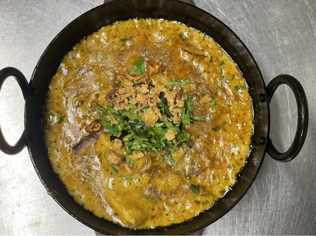 Kokt kött med karai sås. (Kyckling – 185:- Lamm – 195:- Biff – 185:-)
